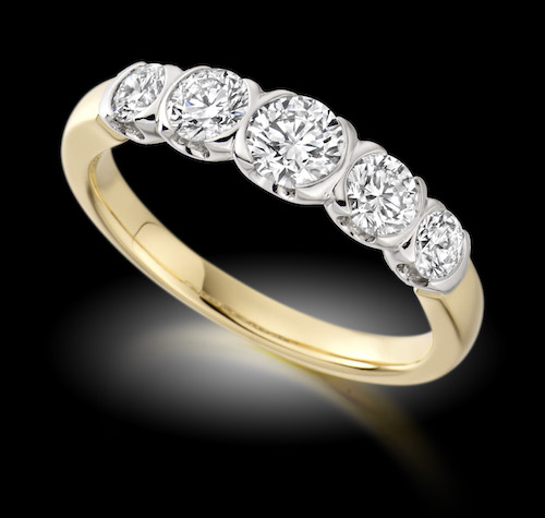 5 Stone diamond ring,Made in 18k white gold,Graduate half moon set,Diamond ring from Dublin Ireland.