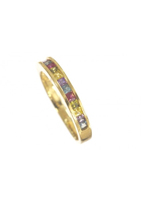 A very colourful 9k yellow gold ring set with mixed coloured cubic zirconia 2.50mm each